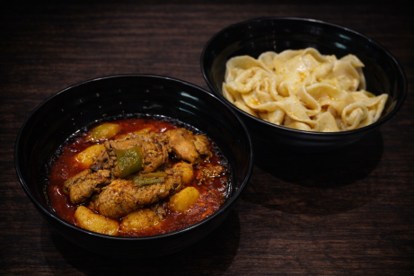 With naan +£1.50 / with noodle pieces +£2.00