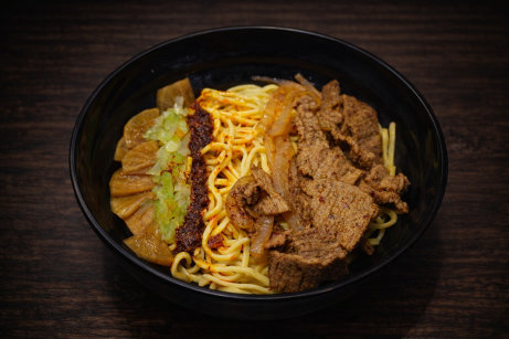 Egg Noodles and Uyghur stir- fried beef combo Tangy, lightly spicy egg noodles with diced celery, …